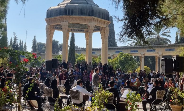اجرای گروه موسیقی نوبان در کنار گشت و گذار سینماگران در آرامگاه حافظ، حال و هوای دلنشین حافظیه را دوچندان کرده بود.